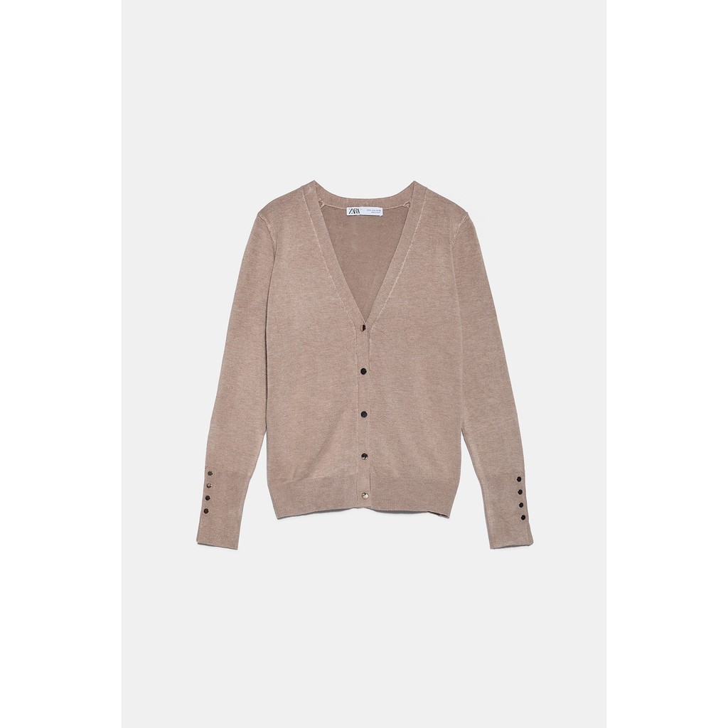 Áo len Cardigan cúc kim loại cổ V Màu Nâu Zara Auth new tag có sẵn 8851/927 8851927