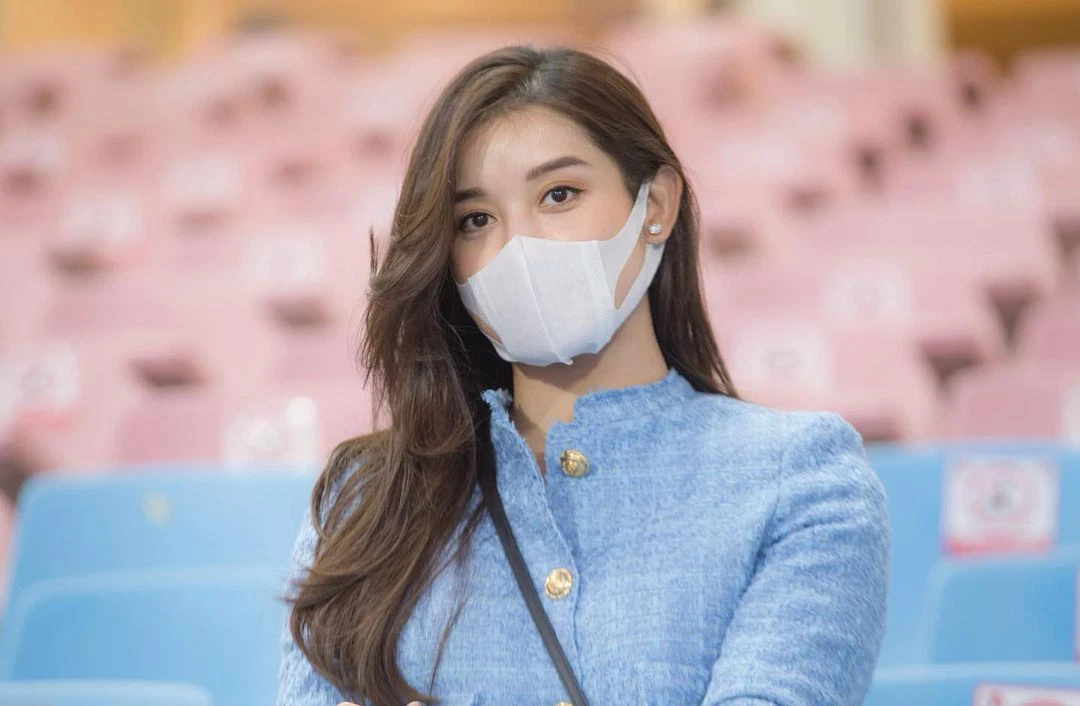 Lên đồ đi xem bóng, Á hậu Huyền My chọn diện mẫu áo khoác vải tweed. Thiết kế vừa thanh lịch, tôn dáng lại có màu sắc trẻ trung, nổi bật. Mẫu áo này vốn đã ấn tượng nên cô không cần sử dụng quá nhiều phụ kiện cầu kỳ, chỉ cần trang điểm nhẹ nhàng là đã có diện mạo ưng ý.