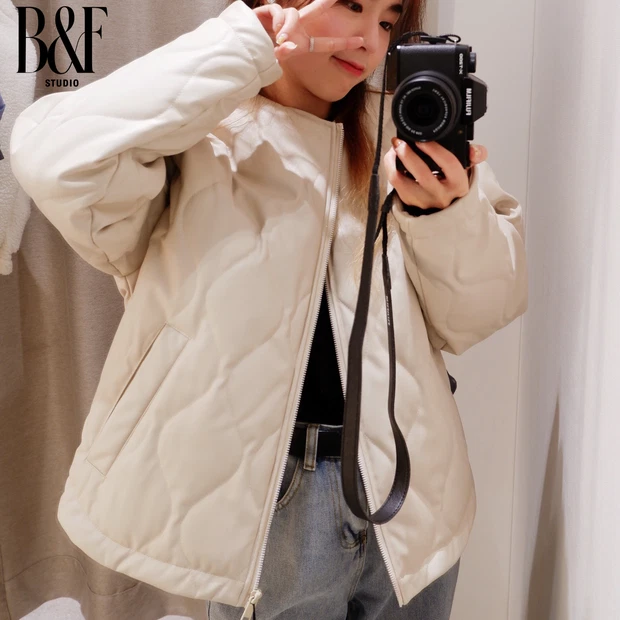 Cũng là với chất liệu da nhưng em áo phao này lại được chần bông và mỏng hơn một chút! Với màu trắng sữa vô cùng đáng yêu và dễ phối đồ thì chắc chắn đây sẽ là sự lựa chọn của những cô nàng theo phong cách dễ thương rồi!