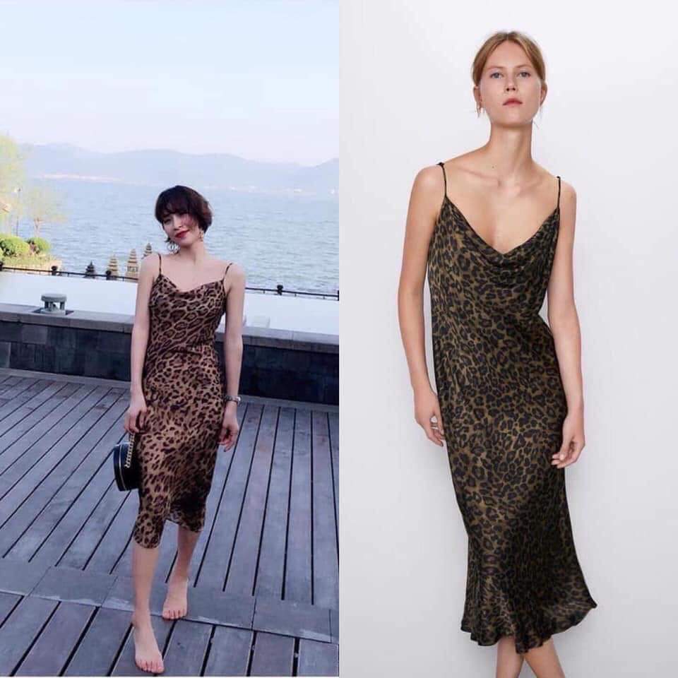 Váy lụa cổ đổ dáng dài họa tiết báo Zara Auth New Tag có sẵn 9479/251 9479251 bầu mặc được
